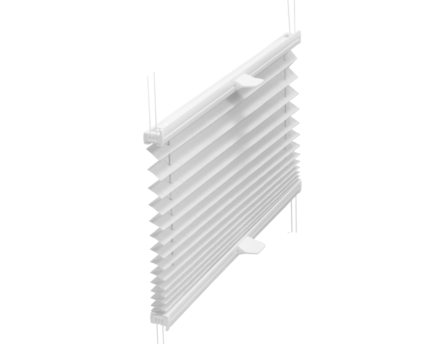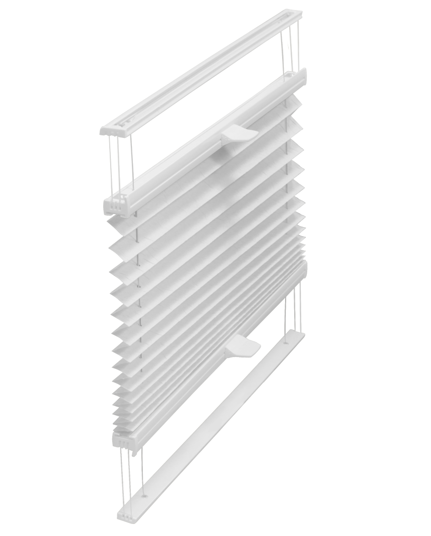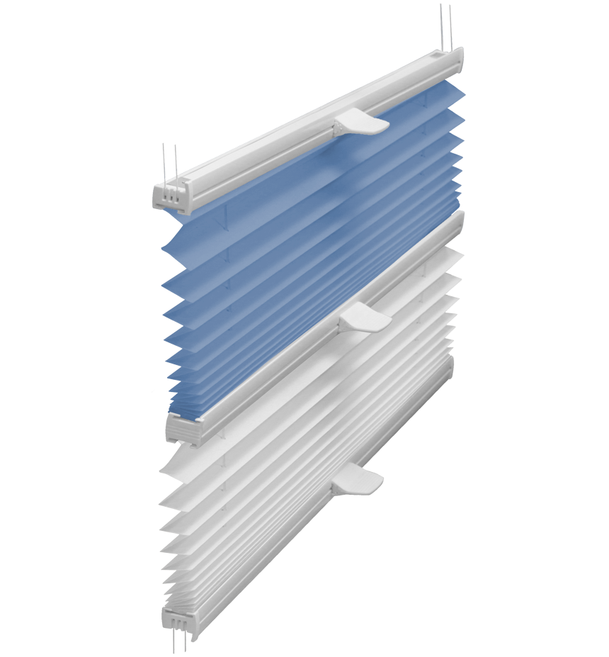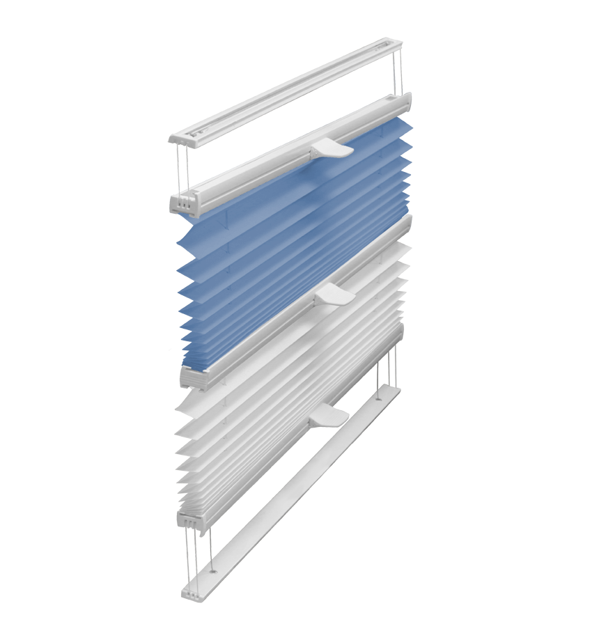 Modellen med två reglerbara lister, som dras både uppifrån och ner samt nerifån och upp. Plissegardinen utrustad också i två fasta skenor.