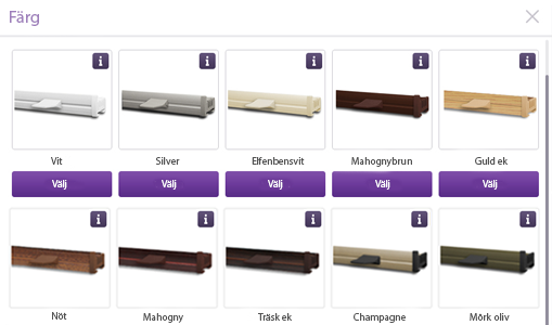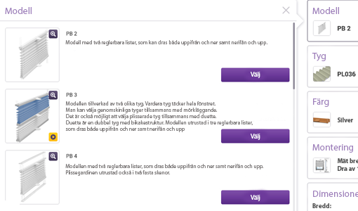 På produktens nederkant klickar du på knappen “Klicka och beställ”. Då startar Du konfiguration med hjälp av vår intuitiva konfigurator BlindsPRO.